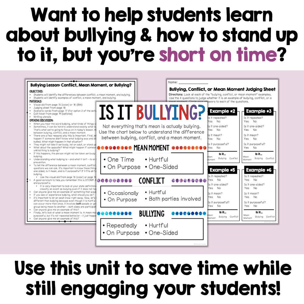 You know how serious bullying is and you want your students to be able to identify bullying and stand up to it... but crafting the perfect lessons takes a lot of time that you don't have.'t have.
