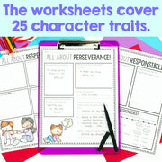 Are you looking for quick and easy ways to talk about character education with your students? These 50 unique worksheets are a no-prep way to teach about 25 character traits! Students will consider what the character trait means, why it's important, and how they can apply it to their lives.