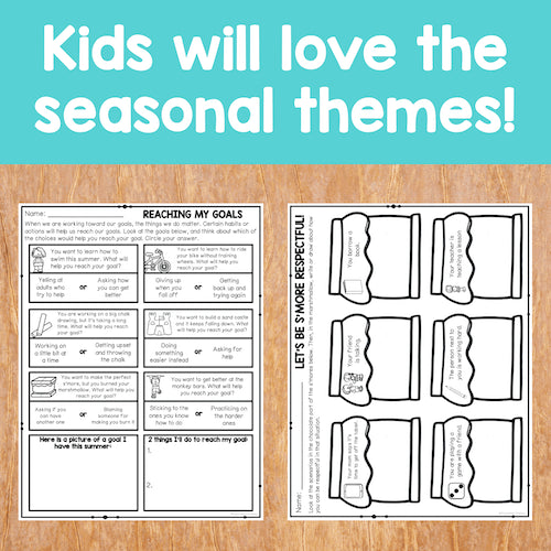 Use these 10 June-themed worksheets to help kids learn about important SEL topics! Kids will love the seasonal fun as they explore summer safety, goal setting, worry and anxiety, respect and responsibility.
